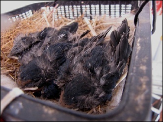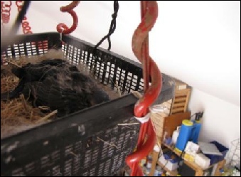 De beste oplossing is een kunstmatig nestje te maken van bv. mandje, plastic bakje o.i.d en daarin de bodem van het afgevallen nest te leggen. Dit bakje weer ophangen op de plaats van of in de buurt van het afgevallen nest en vervolgens de jongen weer terugplaatsen (zie foto’s onder). Meestal wordt dit zonder problemen door de ouders geaccepteerd en worden de jongen verder gevoerd tot ze uitvliegen.