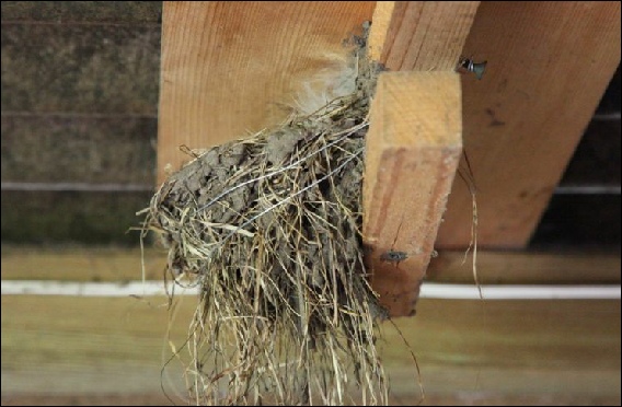 Inderdaad zijn er andere vogels die nesten van boerenzwaluwen kraken. Dat zijn meestal (nog) onbewoonde nesten. Winterkoningen doen het vaak en bouwen een nest van bladeren en andere plantenresten in het zwaluwnest tot een bolletje met een kleine opening erin. Huismussen sjouwen het nest soms vol met hooi en stro voor hun eigen nest. In de zomer zijn er soms zwarte roodstaarten die in halfopen schuren hun platte nestje in de nestkom van een boerenzwaluwnest bouwen.